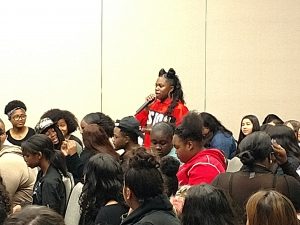 Youth leaders debated and spoke to these questions at the recent Future of Feminism youth leadership conference at Cal State University Dominguez Hills (CSUDH). Sponsored by the Women’s Leadership Project, the L.A. County Human Relations Commission and Media Done Responsibly, the conference featured youth-facilitated workshops, videos, presentations, and a musical performance by women and girls of color from across Los Angeles County. Students from Dorsey High School, Gardena High School, Fremont High School, Diego Rivera Academy, Carson High School, King-Drew Magnet High School and Miguel Contreras Learning Complex attended the conference. The event was emceed by WLP alumni and former foster care youth Clay Wesley (WLP 2009, Mount St Mary’s University, 2018) and Drea Wooden (WLP 2017). The conference kicked off with a