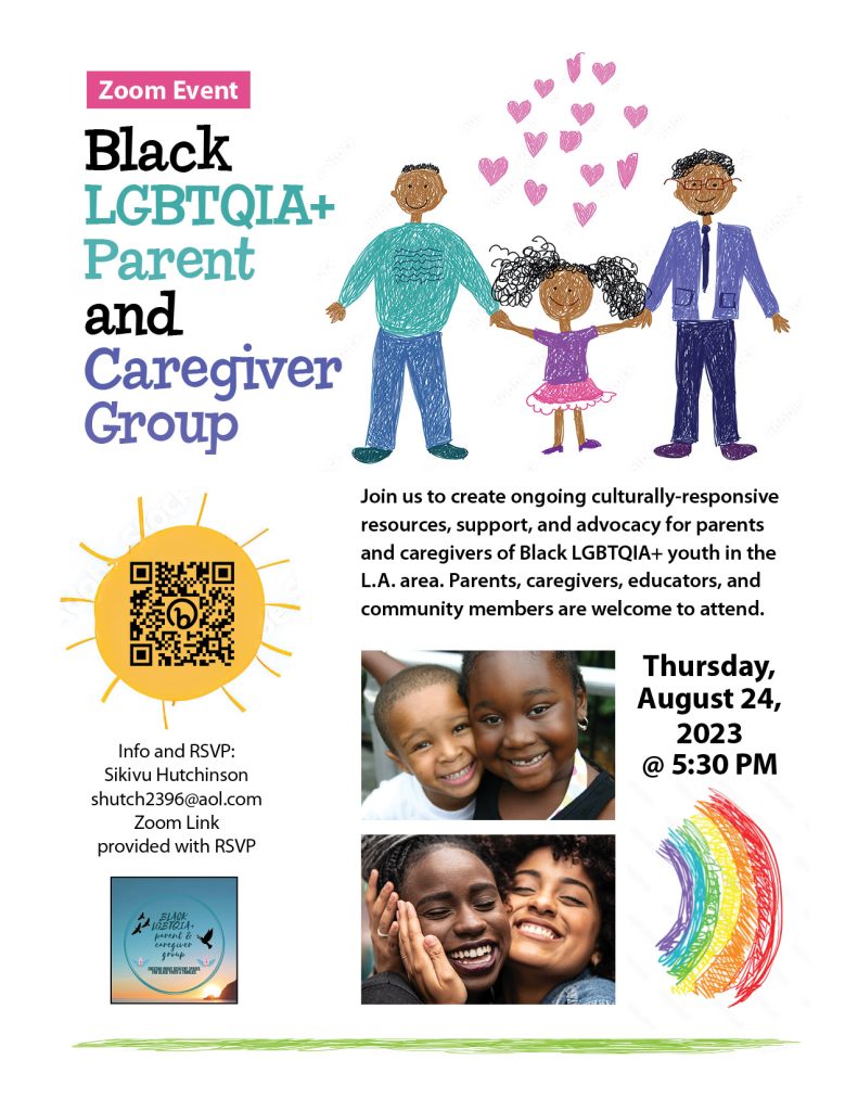 Please join us for an opportunity to create ongoing culturally responsive resources, support, and advocacy for parents and caregivers of Black LGBTQIA+ youth in the L.A. area. Parents, caregivers, educators, and other community members are welcome to attend.