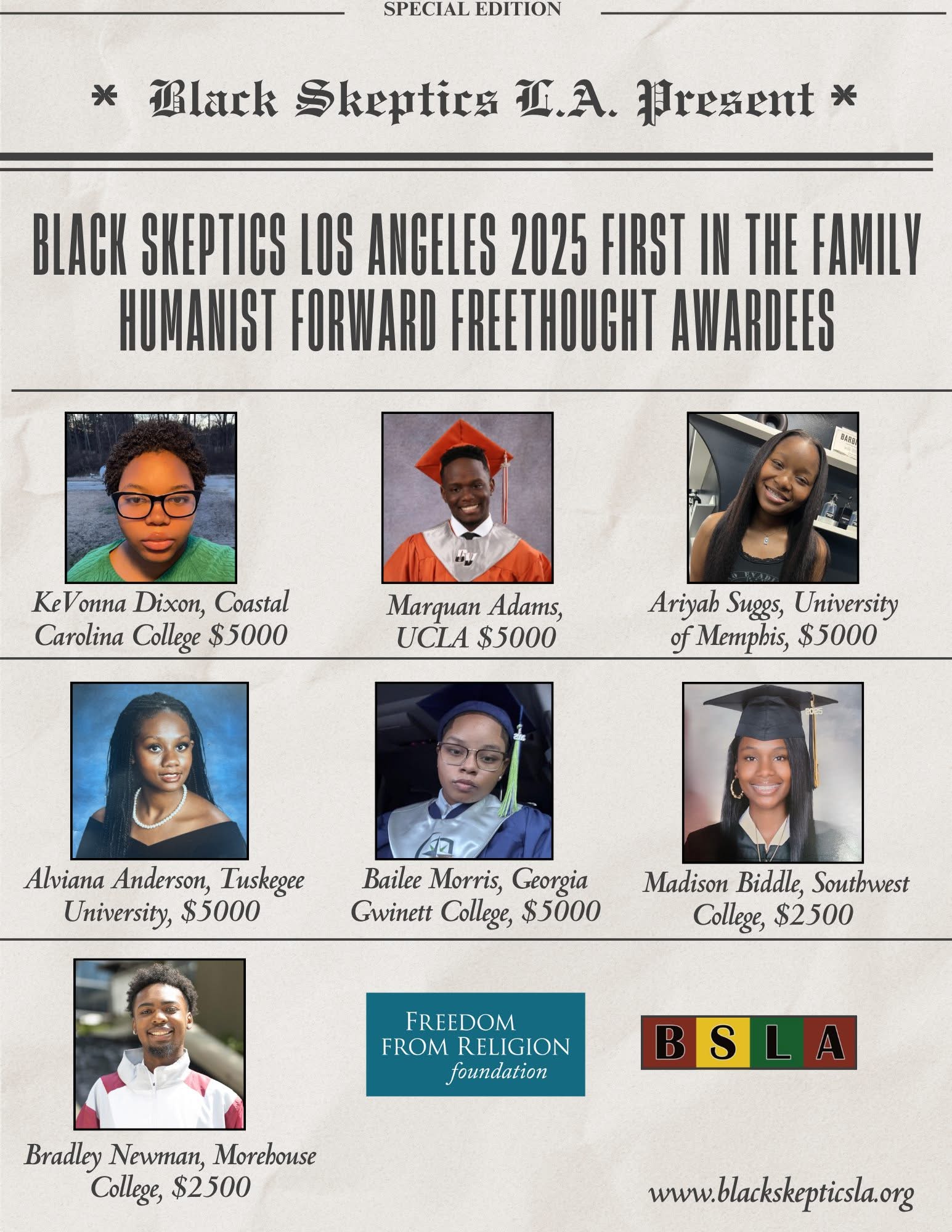 DetailsApplications for our 2026 First in the Family Humanist $5000 scholarships are now available! Six college scholarship awards are available for BIPOC secular youth of